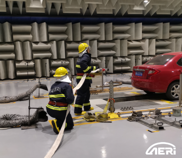 2020年5月29日下午16:00中汽研(天津)汽車(chē)工程研究院有限公司(以下簡(jiǎn)稱(chēng)“工程院”)在性能一綜合實(shí)驗樓的整車(chē)半消聲室模擬新能源車(chē)實(shí)驗中電池起火事故,組織開(kāi)展火災事故應急演練工作。性能一綜合實(shí)驗樓各部門(mén)人員參與了本次演練。