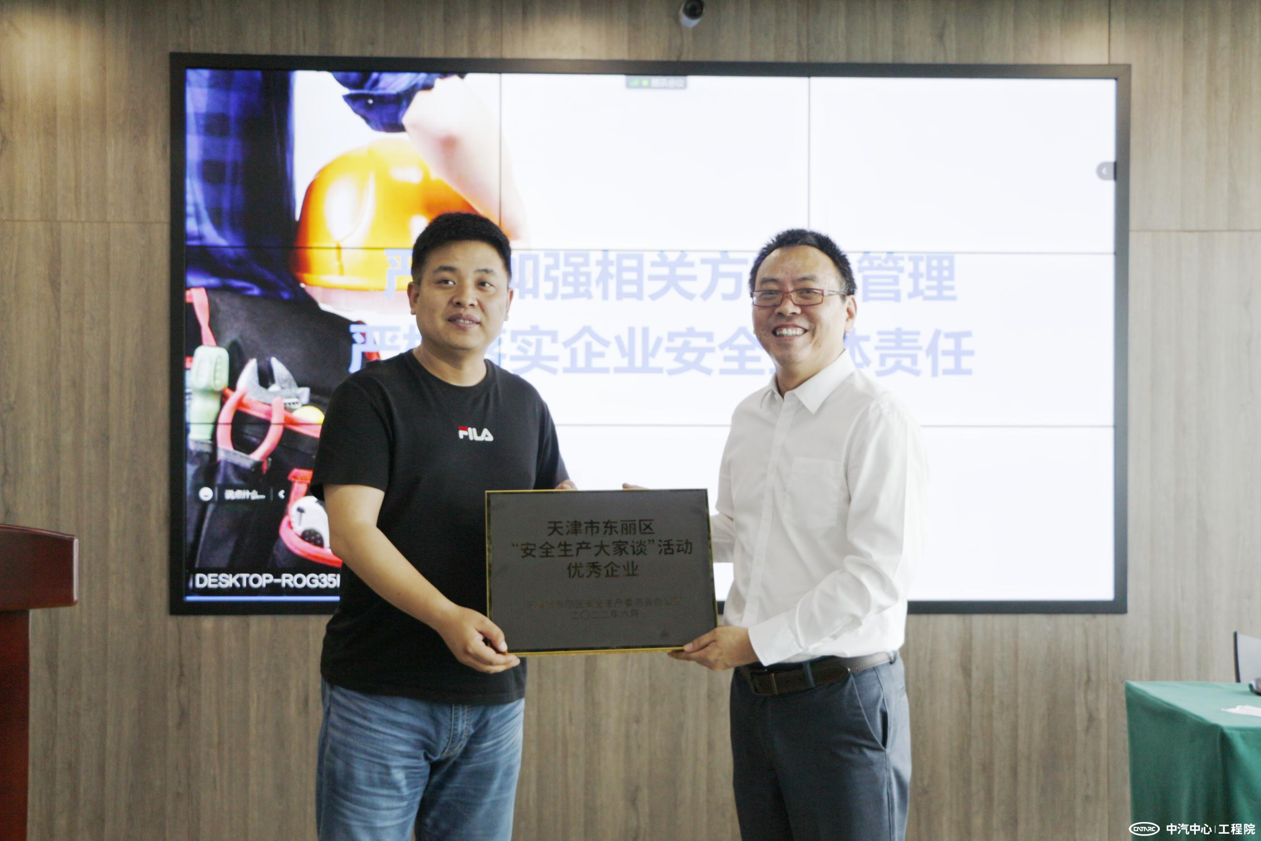 活動(dòng)最后東麗區應急管理局為工程院頒發(fā)了“天津市東麗區‘安全生產(chǎn)大家談’活動(dòng)優(yōu)秀企業(yè)”榮譽(yù)稱(chēng)號。