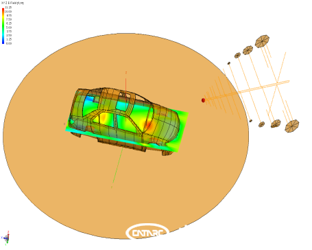 中汽中心工程院EMC正向開(kāi)發(fā)團隊,對整車(chē)EMC開(kāi)展多角度、多方面的仿真預測分析。