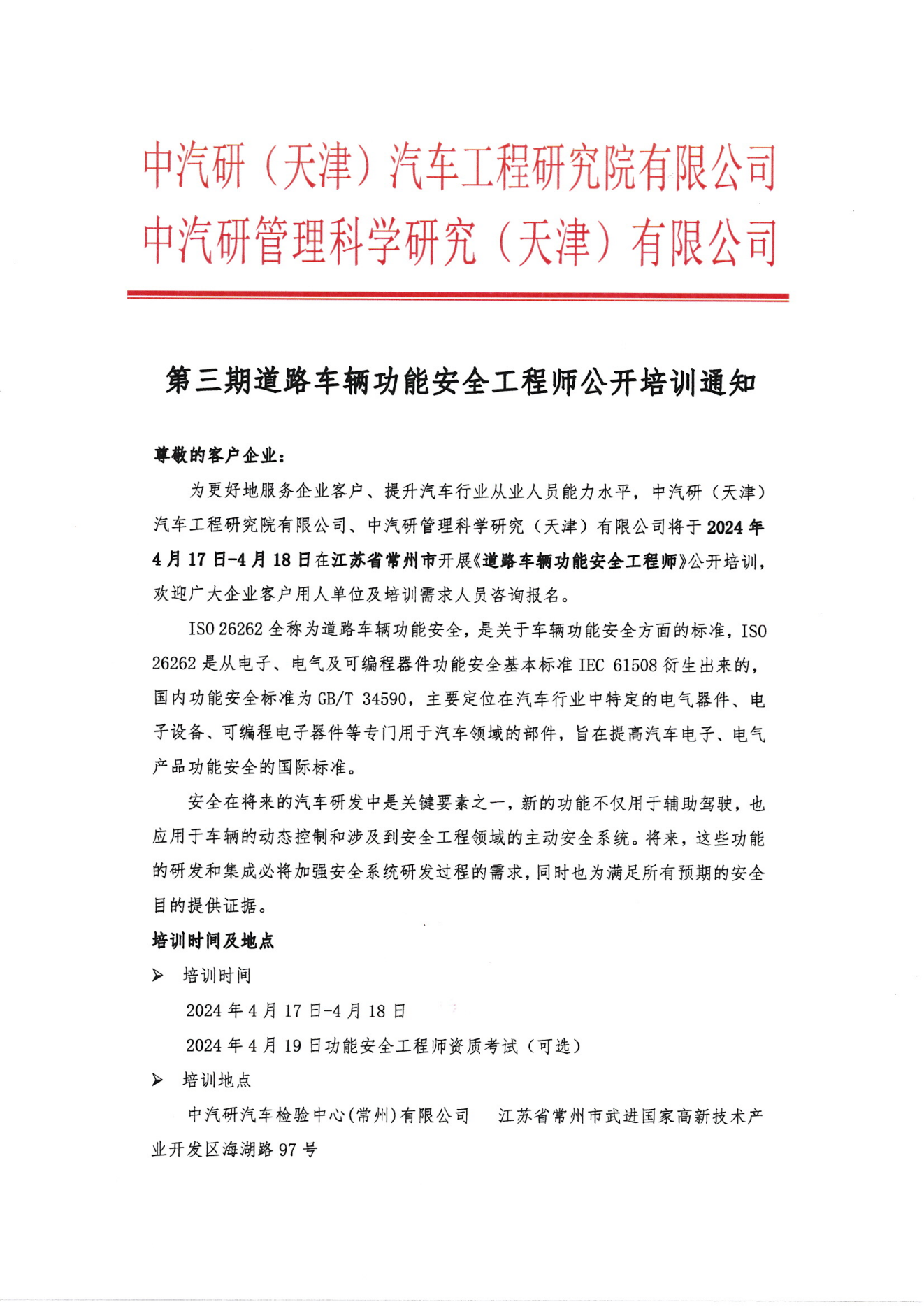 第三期道路車(chē)輛功能安全工程師公開(kāi)培訓通知