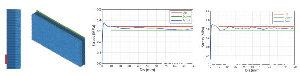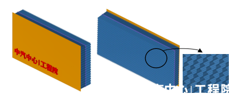 正面FWDB有限元壁障整體尺寸為2000×1000×300mm,采用前后兩段不同力學(xué)性能的蜂窩鋁結構設計而成,壁障整體固定在剛性墻上承受車(chē)輛35公里/小時(shí)的撞擊。依托完善的數字化壁障開(kāi)發(fā)關(guān)鍵技術(shù)體系,工程院安全開(kāi)發(fā)團隊通過(guò)有限元模型等效、蜂窩鋁失效卡片開(kāi)發(fā)、壁障力學(xué)性能標定與整車(chē)分析迭代,開(kāi)發(fā)出了高精度FWDB數字壁障模型,該模型可滿(mǎn)足Euro-NCAP技術(shù)公告042正面全寬可變形壁障設計要求(Version 1.0 July 2024)。