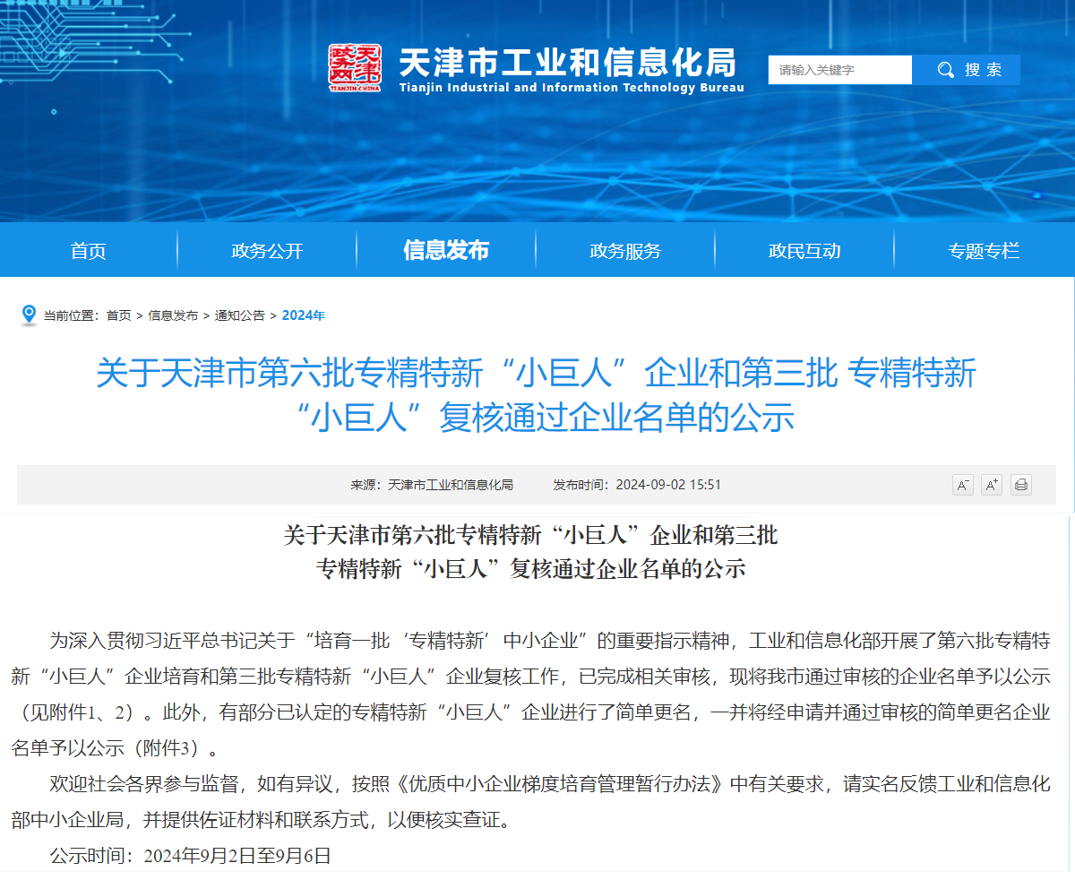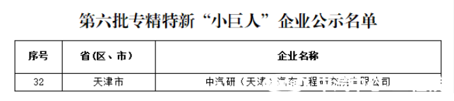 近日,根據工業(yè)和信息化部審核認定結果,天津市工業(yè)和信息化局發(fā)布了第六批專(zhuān)精特新“小巨人”企業(yè)公示名單,中汽研(天津)汽車(chē)工程研究院有限公司(簡(jiǎn)稱(chēng)“中汽中心工程院”)位列其中,榮獲國家級專(zhuān)精特新“小巨人”企業(yè)榮譽(yù)稱(chēng)號。