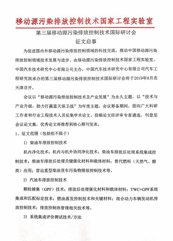 第三屆移動(dòng)源污染排放控制技術(shù)國際研討會(huì )征文啟事