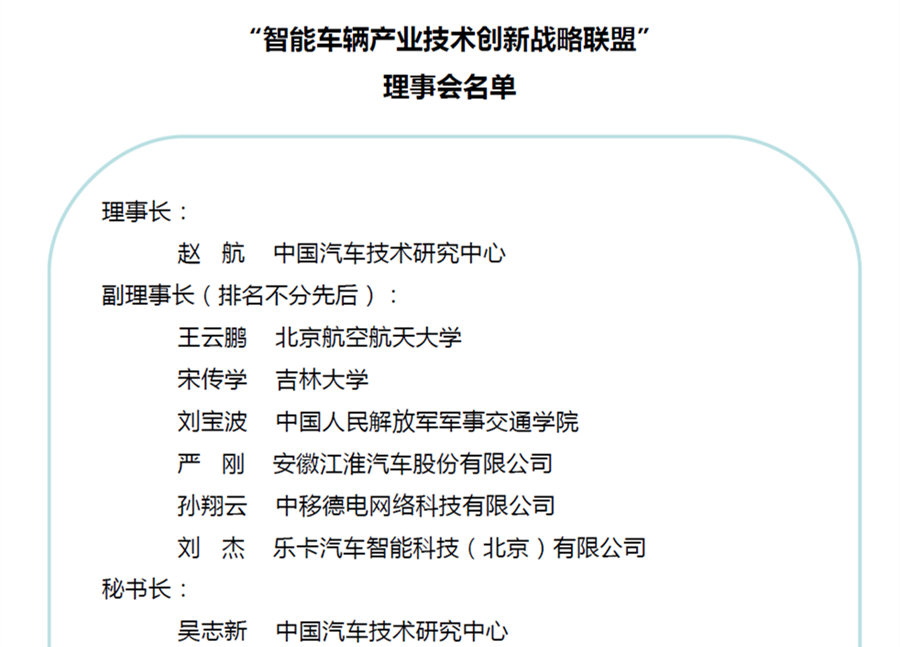“智能車(chē)輛產(chǎn)業(yè)技術(shù)創(chuàng )新戰略聯(lián)盟”成立大會(huì )在京成功召開(kāi)