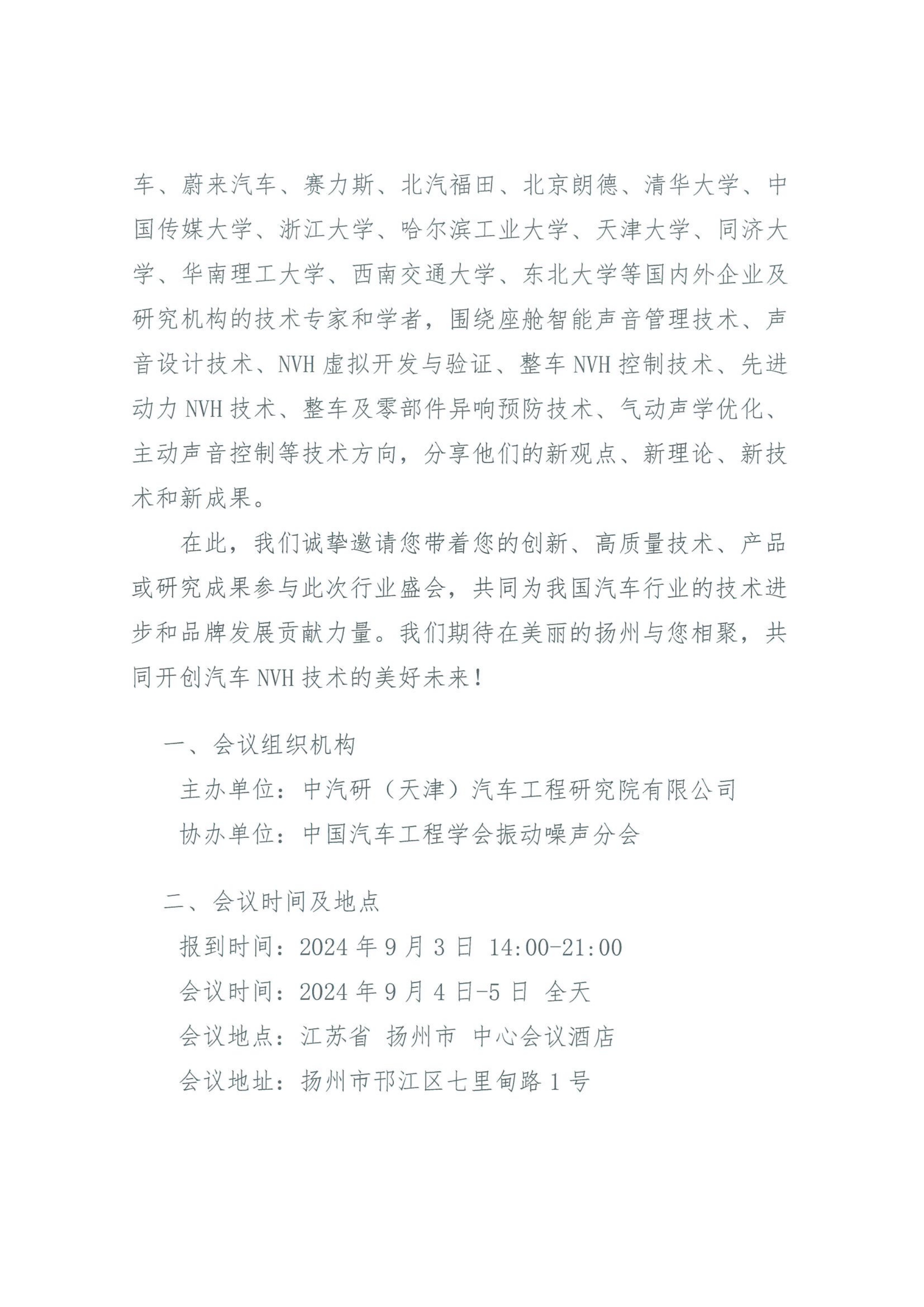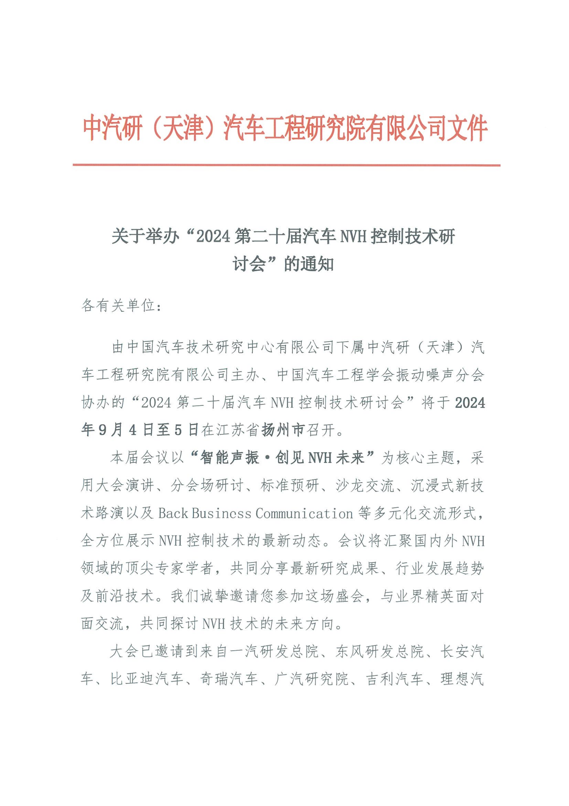 關(guān)于舉辦“2024第二十屆汽車(chē)NVH控制技術(shù)研討會(huì )”的通知