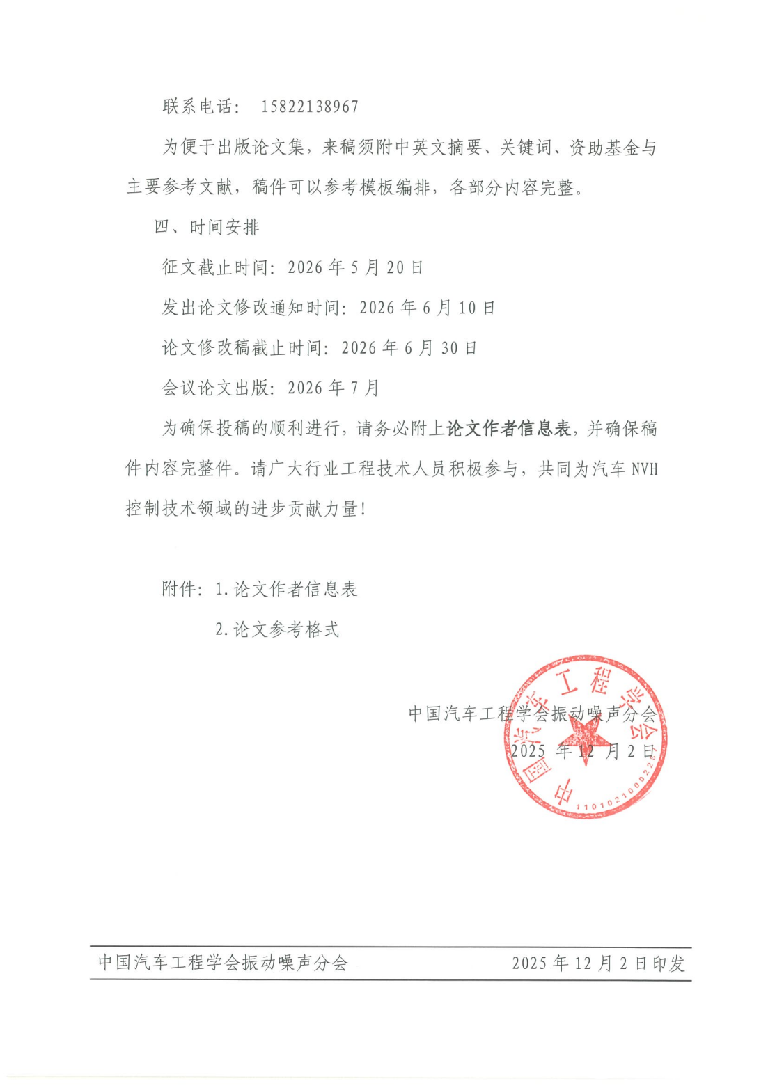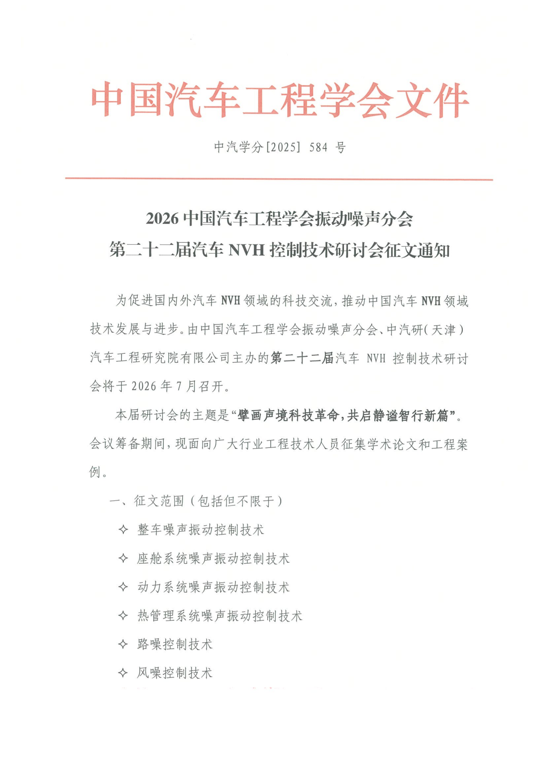 2026中國汽車(chē)工程學(xué)會(huì )振動(dòng)噪聲分會(huì ) 第二十二屆汽車(chē)NVH控制技術(shù)研討會(huì )征文啟事