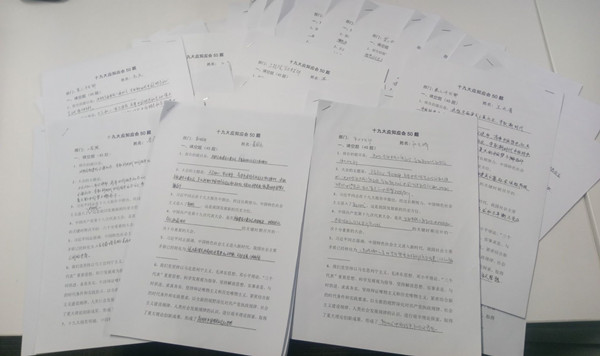 測試試題包括填空題和簡(jiǎn)答題兩大部分共50道題,內容涵蓋了黨的十九大報告的核心論斷,通過(guò)本次知識測試活動(dòng),大家紛紛表示要增強學(xué)習的主動(dòng)性和積極性,學(xué)以致用,進(jìn)一步深刻領(lǐng)會(huì )黨的十九大精神實(shí)質(zhì)。