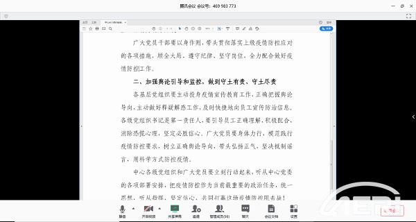 為加強新冠肺炎疫情防治工作,維持第五開(kāi)發(fā)本部和第七開(kāi)發(fā)部正常生產(chǎn)經(jīng)營(yíng)秩序,2020年2月11日,工程院黨委第五開(kāi)發(fā)本部黨支部開(kāi)展“防疫情,保生產(chǎn),提升危機管理能力”主題黨日活動(dòng)。為避免人員聚集帶來(lái)交叉感染的風(fēng)險,本次活動(dòng)采用線(xiàn)上會(huì )議形式進(jìn)行。工程院黨委委員、第五開(kāi)發(fā)本部黨支部書(shū)記戎輝主持會(huì )議,108名黨員群眾參加會(huì )議。