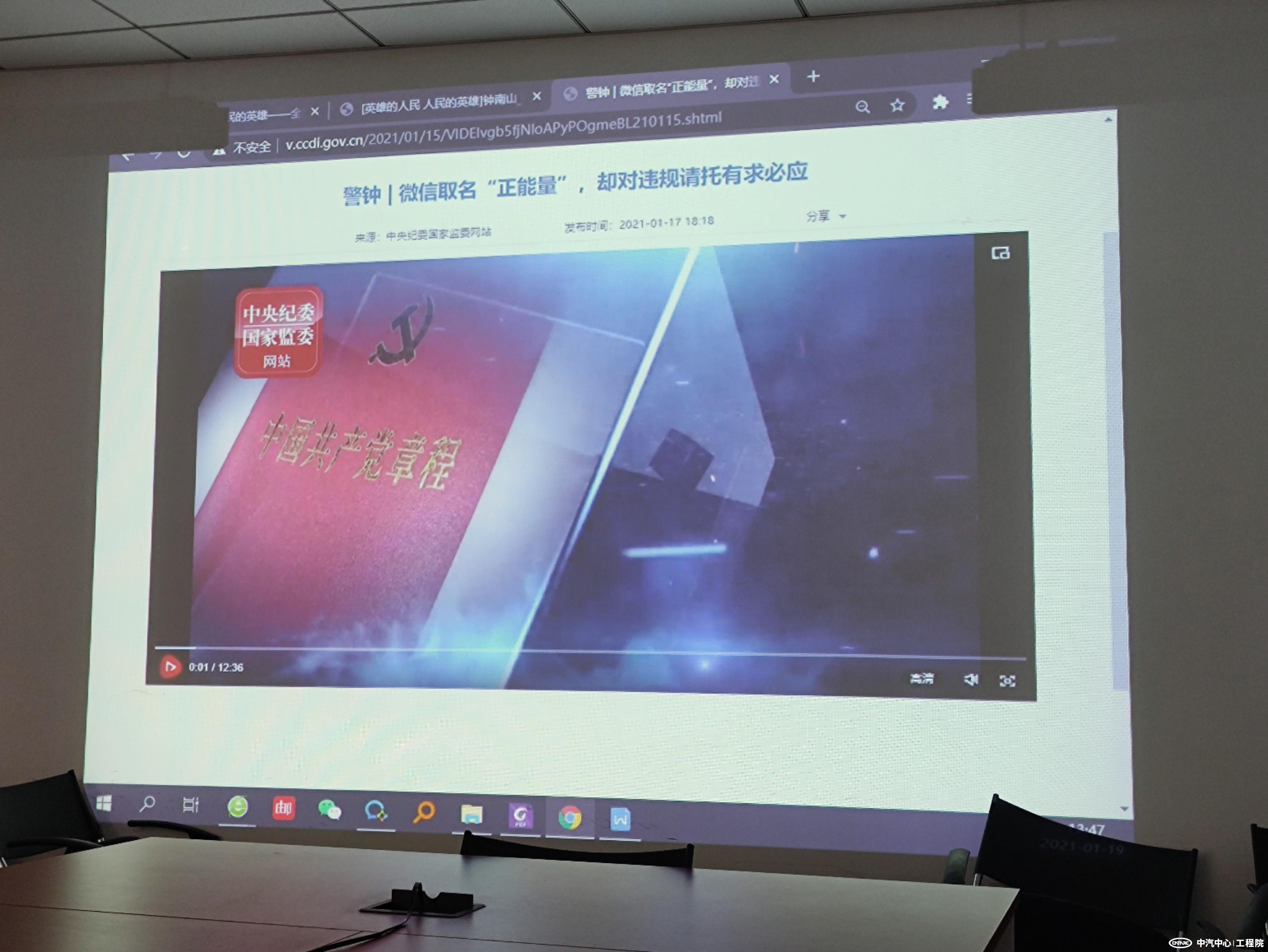 首先,全體參會(huì )人員共同觀(guān)看了中紀委監委視頻材料《警鐘-微信取名“正能量”,卻對違規請托有求必應》。隨后,支部書(shū)記朱仲文結合視頻內容、《關(guān)于緊盯2021年元旦、春節兩節期間“四風(fēng)”問(wèn)題的通知》以及《元旦、春節期間"四風(fēng)"問(wèn)題監督舉報曝光專(zhuān)區通報9起典型案例》兩個(gè)文件,要求全體人員廉潔過(guò)節。朱仲文提醒,無(wú)論身處哪種級別,都要嚴于律己,做好自查自糾,工程院紀委將嚴肅處分頂風(fēng)違紀人員。